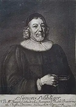 Simeon Nöthiger wurde als Sohn des Metzgers Martin Nöthiger und der Katharina Nöthiger in Bern geboren. Ab 1673 studierte er Theologie in Bern.[1] 1690 wurde er Pfarrer in Bolligen, 1695 in Worb und 1699 dritter Pfarrhelfer in Bern. 1700 wurde er erster Helfer in Bern, 1709 dritter Pfarrer am Münster, 1714 zweiter Pfarrer, 1716 erster Pfarrer und 1718 schliesslich Dekan.[1] Von 1690 an war er mit Elisabeth Fellenberg verheiratet, ab 1718 in zweiter Ehe mit Anna Maria Sinner.[1]