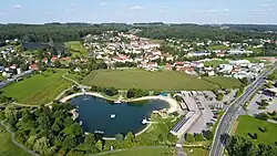 Sinabelkirchen mit der Bade- und Freizeitanlage „Siniwelt“ im Vordergrund