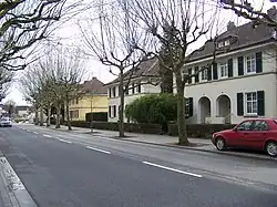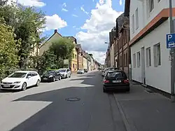 Die Bebauung der Straße begann erst im 20. Jahrhundert im südlichen Teilabschnitt. 1907 entstand das erste Gotteshaus der evangelischen Kirchengemeinde im ursprünglich katholischen Sindlingen. In den folgenden Jahren entstand im Umfeld die so genannte Villenkolonie für führende Mitarbeiter der Farbwerke Hoechst.
