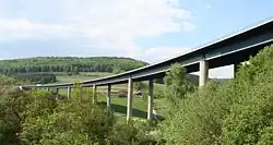 Die 29,5 m breite Talbrücke besteht aus je einem Stahlverbundüberbau für eine Richtungsfahrbahn, bei insgesamt vier Fahr- und zwei Standstreifen, in einer Höhe von maximal 44 m über dem Tal. Das erste Bauwerk aus dem Jahr 1967 musste aufgrund von Bauschäden nach 46 Jahren durch einen Neubau ersetzt werden.