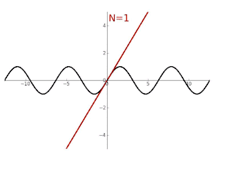 zusammen mit den ersten Taylorpolynomen Diese Animation illustriert die Definition der Sinusfunktion durch eine Reihe. Je größer die Zahl ist, desto mehr Summanden werden in der Reihendefinition verwendet. So ist bei neben der Sinusfunktion zusätzlich das kubische Polynom eingezeichnet.