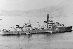 Den Rest ihrer ersten Einsatzzeit vor Korea verbrachte Sioux in der Sicherung des britischen Flugzeugträgers Theseus, der die Küste überwachte und den Rückzug und die Räumung über Inchon unterstützte. Der Zerstörer kehrte dann nach Sasebo am 2. Januar 1951 zurück, um zwei Wochen später die Heimreise anzutreten.[20] Vor Korea ersetzte der kanadische Tribal-Zerstörer Nootka die Sioux.[19]