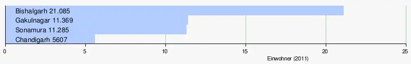 Im Distrikt gibt es mit dem Distrikthauptort Bishalgarh und Sonamura zwei städtische Siedlungen. Statistisch gesehen gelten allerdings Chandigarh und Gakulnagar auch als Städte (sogenannte census towns).