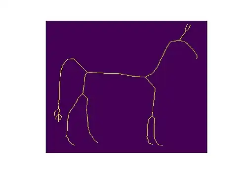 In diesem Beispiel wird mit Hilfe der Python – Bibliothek Scikit-image das Bild eines Pferdes mit einem Skelettierungs-Algorithmus verarbeitet.[2]