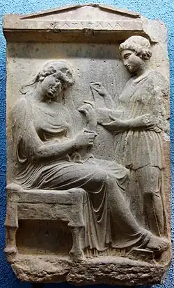 - ↑ William Kendrick Pritchett, Anne Pippin: The Attic Stelai, Part II. In Hesperia. Band 25, Nr. 3, 1956, S. 276–281.