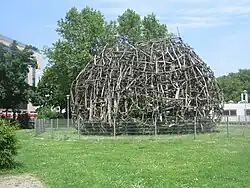 Mo Edoga | Himmelskugel Treibholz Nach dem Tod des Künstlers ergab eine Prüfung durch das Rechtsamt, dass die Stadt Mannheim nie Eigentümerin der „Himmelskugel“ war. Die Hinterbliebenen lehnten den Abbau der Kugel ab. Es sei im Gedanken des Künstlers, zu sehen, wie sich die Himmelskugel „weiterentwickelt“. |
