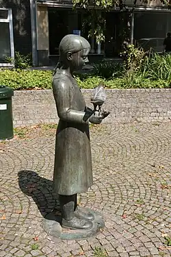 Nicht zufällig hält das in Form einer Bronzeplastik dargestellte Mädchen nahe der Antoniuskirche eine Taube in der Hand: Sie gilt als Lieblingstier der Bergleute und erinnert so an ein großes Kapitel der Industrie- und Wirtschaftsgeschichte Hertens. Die Plastik zeigt ein Kind in fürsorgender Beziehung zum Tier – ein Sinnbild dafür, dass beide, Mensch und Tier, Teile einer Schöpfung sind, für die der Mensch in besonderer Weise Sorge tragen muss. Die schlichte Figur fügt sich in die ebenfalls einfache Gestaltung des Antoniusplatzes ein.