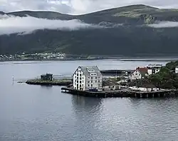 Das für die Fischereiwirtschaft errichtete viergeschossige weiße Holzgebäude entstand im Jahr 1916. Bedeckt ist es von einem Satteldach. Im Haus wurden große Mengen Fisch umgeschlagen und Heringe gesalzen[2]. Während der deutschen Besetzung Norwegens während des Zweiten Weltkriegs überwachte deutsches Militär aus dem Haus heraus sowohl den Schiffs- als auch den Flugverkehr. Nach dem Krieg diente es wieder dem Fischumschlag, auch nachdem 1954 ein neuer Eigentümer das Gebäude übernahm. Nach Ende der wirtschaftlichen Nutzung verfiel der Bau und es gab Pläne das Haus abzureißen, wogegen sich Widerstand formierte[3]. Im Mai 2011 entschied sich der Stadtrat von Ålesund gegen einen Erhalt. Der Riksantikvar Jørn Holme setzte sich jedoch für den Erhalt des Gebäudes ein.[4] Es wurde etwa 2012 dann unter Denkmalschutz gestellt. Das Gebäude gilt als Beispiel eines maritimen Baus, wie sie für die norwegische Küste typisch waren, jedoch vielfach nicht mehr erhalten sind.