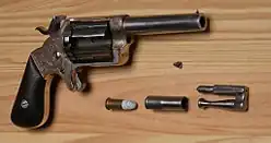 Die Trommel des Revolvers war außen offen. In die fünf Öffnungen waren von vorne zylindrische Hülsen eingeschoben, welche als Patronenlager dienten. Zum Laden mussten diese Hülsen, eine nach der andern, zuerst entriegelt, dann nach vorne über den Hülsenauswerfer geschoben werden. Daraufhin konnte eine Patrone in die freiliegende Öffnung in der Trommel eingelegt werden. Durch Zurückschieben der Hülse war die Kammer geladen. Verschossene Patronenhülsen wurden durch den parallel zum Lauf fest angebrachten Hülsenauswerfer entfernt.