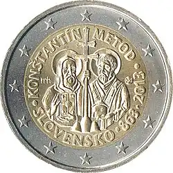 - ↑ 10 Euro 2018, 1150. Jahrestag der slawischen liturgischen Sprache. UCoin, abgerufen am 16. Februar 2022.