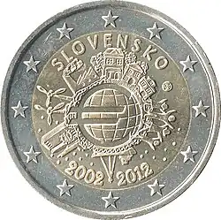 - ↑ 10 Euro 2019, 10. Jahrestag der Einführung des Euro in der Slowakei. UCoin, abgerufen am 16. Februar 2022.