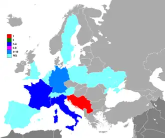 | 2000 | Niederlande und Belgien | nicht qualifiziert | In der Qualifikation an Rumänien und Portugal gescheitert. | |||