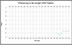 | 6 WM-Spiele 1 Sieg 1 Unentschieden 4 Niederlagen 5:10 Tore | |