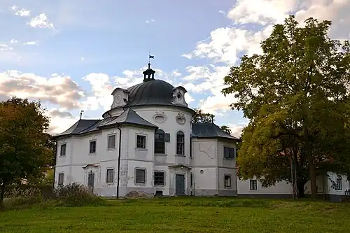 Architektonisch erwähnenswert ist das barocke Jagdschloss in Karlov aus dem 18. Jahrhundert, ein einstöckiges Gebäude mit ovalem Mittelbau, der von zwei kompakten Seitenflügeln flankiert wird. Erbauen ließ es der böhmische Adlige Karl Gottlieb von Bissingen. Später kam es an die Prinzen zu Schwarzenberg auf Burg Orlík nad Vltavou, mit der es 1992 an die Familie restituiert wurde.