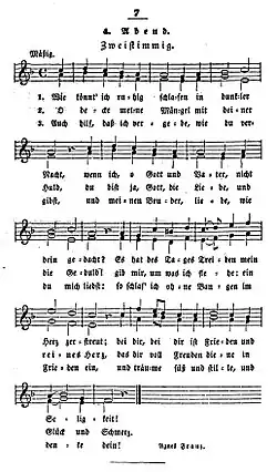 - ↑ Friedrich Silcher: Zwölf Kinderlieder für Schule und Haus, zwei- drei- und vierstimmig componiert. Heft 3. Laupp, Tübingen 1843, S. 7 (Digitalisat in der Google-Buchsuche).