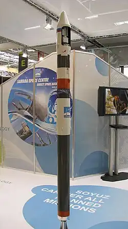 Modell der Sojus 2.1w auf der Pariser Luftfahrtschau 2011