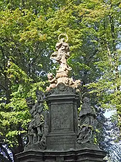 In der Mitte des Platzes stand einmal eine im Jahr 1719 von Christian Karl von Platz und Ehrental erbaute und gestiftete Marienstatue, die aber vor dem Jahr 1902 zur Kreuzkirche überstellt wurde.[13] Von Anfang an befindet sich östlich die Antoniuskirche.