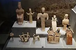 1957 und 1958 führte der Archäologe Nikolaos Verdelis bei Galataki Ausgrabungen durch. Er entdeckte 300 m südwestlich des Ortes ein apsidiales Gebäude von 23 m Länge und 7 m Breite. Der Eingang befand sich im Osten und die Apsis im Westen. Vor dem Gebäude, das vermutlich ein Tempel war, fand er einen Π-förmigen Brandopferaltar.[7] Der Tempel wurde im 8. Jahrhundert v. Chr. errichtet, in der Archaischen Zeit umgebaut und blieb bis ins 5. Jahrhundert v. Chr. in Gebrauch. Anhand der Depotfunde, die aus über tausend Vasen und Tonfiguren bestehen, wird vermutet, dass hier die Göttin Hera verehrt wurde. Der Archäologe Alexander Mazarakis Ainian lehnt jedoch die Identifizierung des Gebäudes als Tempel ab.[8]