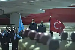 Die somalische Führung betrachtet Ankara als wichtigen strategischen Partner; seit 2013 vermittelt die Türkei auch in Gesprächen zwischen der somalischen Bundesregierung und der de-facto autonomen Region Somaliland.[7] 2015 weihte Erdoğan bei einem weiteren Besuch eine Reihe neuer, von der Türkei finanzierter Entwicklungsprojekte in Somalia ein, darunter ein Krankenhaus in der Hauptstadt Mogadischu, welches zu Ehren von Erdoğan in Erdoğan-Krankenhaus umbenannt wurde.[8][9] Im Dezember 2024 vermittelte die Türkei erfolgreich in einem Streit zwischen Somalia und Äthiopien, mit dem langjährige Spannungen über die Souveränität Somalilands und den Zugang Äthiopiens zum Roten Meer beigelegt wurden.[10]