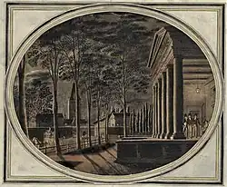 Der Sommerleist war ein konstituierter Leist (Freundeskreis), vergleichbar mit der Grande Société, dem Rauchleist oder dem Krähenbühlleist.[1] Als Mitglieder sind bisher Johann Rudolf Steck, Albrecht Niklaus Zehender (1770–1849)[2], der Bauherrenschreiber Friedrich Bernhard Bay (1755–1814), der Kriegsratsschreiber Albrecht Haller (1758–1823) und der Architekt Carl Ahasver von Sinner als Seckelmeister bekannt geworden.[3] Zehender bezeichnet die Gesellschaft als «Wohlansehnlichen politischen Sommerleist beim Maulbeerbaum».[4] Es handelt sich allesamt um Personen, die vor 1795 nicht im Kleinen oder Grossen Rat sassen. Vermutlich ist der Sommerleist aus der Grande Société heraus entstanden, denn diese plante um 1766 den Bau eines Sommerhauses, verwarf den Plan allerdings wieder.[5] Für das Jahr 1775 ist belegt, dass die Grande Société das Monbijou-Gut für ihre Zusammenkünfte im Sommer mietete.[6] In den Jahren 1797 bis 1799 liess der Sommerleist nach Plänen des Architekten Carl Ahasver von Sinner durch die Werkmeister Schnyder und Haller einen Landsitz bauen.[7] Das Versammlungshaus präsentierte sich gegen die Laupenstrasse mit einem Portikus aus sechs ionischen Säulen, die einen einfachen Giebel trugen. Die Gartenseite war geprägt durch einen Mittelrisalit mit Giebel und halbrund vorspringender Terrasse. Über das Hausinnere ist nicht mehr bekannt, als dass ein Saal den grössten Teil des Grundrisses ausmachte.