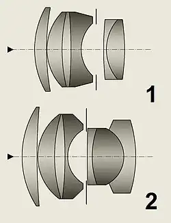 - Tessar, Weiterentwicklung des Protar- bzw. Unar-Anastigmaten mit 4 Linsen in 2 Gruppen (2 Einzelglieder, ein verkittetes Doppelglied)