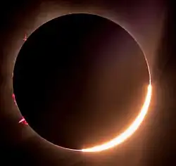 In den Momenten des 2. und 3. Kontaktes scheinen die letzten beziehungsweise die ersten Sonnenstrahlen durch die Täler der gebirgigen Mond-Silhouette und verursachen den Eindruck eines Diamantrings oder einer Perlschnur. Im Englischen heißt dieser Effekt Baily’s beads nach dem britischen Astronomen Francis Baily.