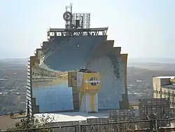 Der Konzentrator ist ein Parabolspiegel von 54 m Breite und 42 m Höhe. Er bildet die Nordfassade eines eigens errichteten, futuristisch gestalteten Gebäudes. Der Konzentrator reflektiert die von den Heliostaten kommenden Strahlen und konzentriert sie in einen Brennfleck von 80 bis 100 cm nutzbarem Durchmesser. Der Parabolspiegel ist aus insgesamt 10.700 Segmenten zusammengesetzt. Diese sind auf 214 Blöcke aufgeteilt, von denen jeder 50 rhombenförmige, 5 mm dicke Spiegelsegmente trägt. Seine optische Achse verläuft 21,5 m über dem Boden. Seine Spiegelfläche erstreckt sich von der optischen Achse 25,5 m nach oben und 16,5 m nach unten. Die Brennweite des Konzentrators beträgt 18 m.[1]