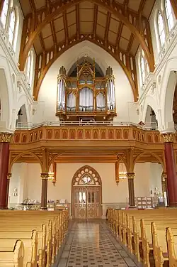 Die Orgel auf der Empore über dem Eingangsportal wurde 1863 von Åkerman & Lunds Nya Orgelfabrik in Knivsta gebaut. Sie verfügt über 40 Register auf drei Manualen und Pedal.[1] Eine weitere seit Mai 2006 im Chor befindliche Orgel mit 22 Registern auf zwei Manualen der Tostareds Kyrkorgelfabrik ist auch mit einigen Pfeifen der 1863 von P.L. Åkerman gebauten Orgel bestückt. Ulf Oldeus schuf den Orgelprospekt.
