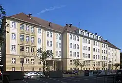 - ↑ Detert, Ballenstedt: Architektur 1900, Band 2: Sondereinrichtungen, Schulen, Hochschulen, Fachschulen, Kasernen, Mannheim: Reinhard Welz Vermittlerverlag Mannheim, 2005, ISBN 978-3-86656-160-1, S. 169; Vorschau über Google-Bücher