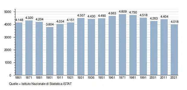 - ↑ Bilancio demografico e popolazione residente per sesso al 31 dicembre 2024. ISTAT. (Bevölkerungsstatistiken des Istituto Nazionale di Statistica, Stand 31. Dezember 2024).