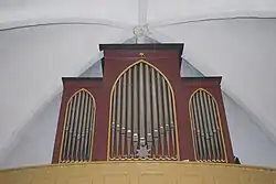 - ↑ Im Pedal ist das Register Octav 4′ offensichtlich ausgetauscht, da die Buchstaben durch ihre etwas hellere Farbe auffallen und es außerdem auf den originalen Registerschildern des Hauptwerks Octave mit -e heißt; ursprünglich war hier wohl ein Gedackt 8′ o. ä. Im zweiten Manual verrät sich das Register Quintatøn 2′ durch das dänische ø (die originalen Registerbeschriftungen haben wie im Wort „Flöte“ ein ö mit Pünktchen) und durch die unlogische Reihenfolge der Registerzüge am Spieltisch (8′ - 2′ - 4′), ursprünglich war hier vermutlich eine Fugara 4′ o. ä. Außerdem hätte es nach der Logik der originalen Beschriftungen Quintatøn 2 Fußton, nicht 2 Fuß heißen müssen, denn Quintatön ist ein Gedacktregister. Der Zimbelstern, den man bei barocken, aber nicht bei romantischen Orgeln erwarten würde, ist vermutlich ebenfalls nachträglich eingebaut. Für die Zeit des Umbaus bekommt man dadurch einen Anhaltspunkt, dass Marcussen das Register Quintatøn 2′ ab der Mitte des 20. Jahrhunderts disponierte, z. B. 1940 in der Nordorgel der Grundvigtskirke (Disposition online hier).