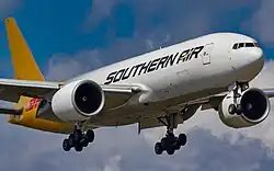 Im Frühjahr 2009 waren insgesamt 23 Boeing 747 auf Southern Air registriert, von denen sie jedoch nur 14 einsetzte. Die anderen neun Maschinen hatte das Unternehmen aufgrund von Überkapazitäten dauerhaft eingelagert.[11] Im Februar und März 2010 erhielt die Gesellschaft ihre ersten zwei geleasten Frachtflugzeuge des Typs Boeing 777FHT, die bis Dezember 2010 für Thai Airways International betrieben wurden.[12] Beide Maschinen kamen im Anschluss im ACMI-Leasing für DHL auf deren Route von Hongkong über Cincinnati nach Bahrain zum Einsatz. Nach der Übernahme von drei weiteren Boeing 777F bediente Southern Air ab dem 27. März 2012 für DHL auch eine von Hongkong ausgehende weltumspannende Verbindung, die über Los Angeles und Leipzig führte.[13]