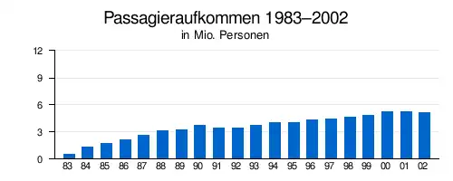 | Jahr | Passagierzahlen | Luftfracht (Tonnen) (mit Luftpost) |