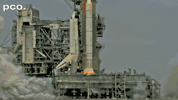 Nachdem die Haupttriebwerke gezündet waren, schwankte das gesamte Shuttle (mit Tank und Boostern) an der Spitze rund 3 Meter nach vorn, weil die Triebwerke des Orbiters sich leicht hinter dem Schwerpunkt des gesamten Shuttle befanden. Danach schwang es wieder zurück. Während dieser Zeit wurde das korrekte Hochfahren der Haupttriebwerke überprüft, denn noch konnten sie abgeschaltet werden. Wenn das Shuttle wieder genau senkrecht stand, zündeten die zwei Feststoff-Zusatzraketen (SRB, Solid Rocket Booster). Bis zu diesem Zeitpunkt wurden die Booster durch Bolzen an der Startrampe festgehalten. Diese wurden wenige Sekundenbruchteile nach Zündung der SRBs teilweise gesprengt, wodurch sie aus der Halterung rutschten und das ganze Shuttle zum Start freigaben.[21] Anschließend hob das Space Shuttle ab.