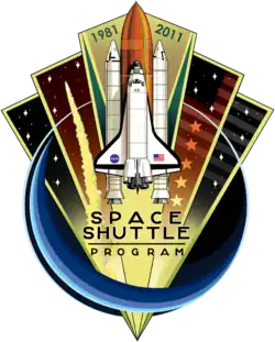 Das Space Shuttle (auch das Shuttle oder der Spaceshuttle[4]) war der bislang einzige für bemannte Raumflüge eingesetzte Raumfährentyp.[5] Das System wurde seit den 1970er-Jahren im Auftrag der US-Raumfahrtbehörde NASA entwickelt, die erste Mission STS-1 startete am 12. April 1981. Durch die Wiederverwendung der Teile des Systems sollten die Flüge in den Weltraum deutlich kostengünstiger als mit nicht wiederverwendbaren Trägerraketen werden. Diese Erwartung erfüllte sich wegen hoher Instandsetzungskosten nicht. 2011 fand der letzte Flug statt.