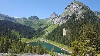 | Spaneggsee mit Schijenstock, Fronalpstock, Färistock und Schilt (von rechts nach links) | ||