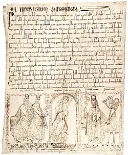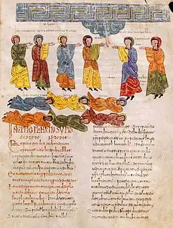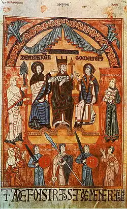 Der wohl um 475 eingeführte Codex Euricianus, ein nach König Eurich benanntes Gesetzbuch, war die erste Rechtskodifikation eines germanischen Reiches.[47] Er wurde zur Basis für die spätere Gesetzgebung westgotischer Herrscher. Der Codex enthielt das an die ethnische Zugehörigkeit und nicht an den Wohnsitz gebundene Recht der Westgoten, während das Recht der romanischen Bevölkerung in der Lex Romana Visigothorum kodifiziert wurde. Diese wurde 506 in Kraft gesetzt. Es handelt sich um eine Überarbeitung des Codex Theodosianus, einer einflussreichen römischen Gesetzessammlung.