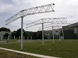 Von den Lagergebäuden sind nur noch die Markierungen der Grundrisse, einige Stützstreben und das ehemalige Treppenhaus als Turm vorhanden. Diese Reste wurden von Dani Karavan mit den für ihn typischen Stilmitteln wie weißen Streifen, einbeziehen der Natur durch Bepflanzungen, erinnern an die ursprüngliche Bebauung durch einen Steingarten und segmentieren der Flächen durch unterschiedliche Bodenniveaus bewusst als Teile des Altstadtparkes herausgearbeitet.