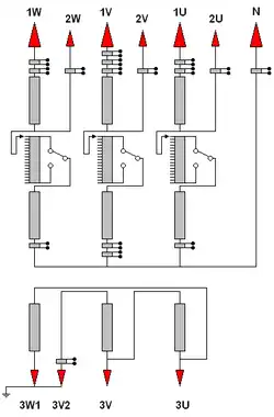 - Autotransformatorsysteme für Bahnstromversorgungsanlagen, ausgeführt als Spartransformator mit Mittelanzapfung