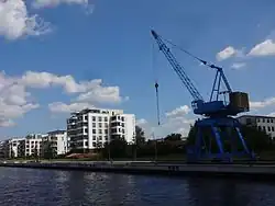 Das Umfeld um den Speicher mit einer Uferpromenade und einem Bootssteg wurde in den folgenden 20 Jahren entscheidend durch Wohnbauten verbessert. Ein Kran symbolisiert das ehemalige Hafengelände.[3]