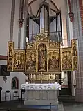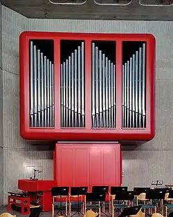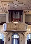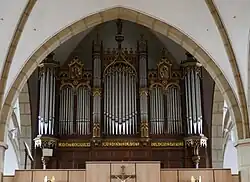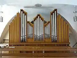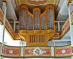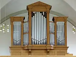III/P 48 Für den Prospekt wurden Holzteile einer Vorgängerorgel aus dem 19. Jahrhundert genutzt.