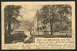 Eine Ansichtskarte von Karl F. Wunder zeigt den Ort vor der Renovierung der Grabenunterführung unter die (heutige) Straße Am Pferdeturm. Die Vergrößerung der Lichtdruckaufnahme zeigt: Auf der Postkarte ist der Stein mit dem Kleeblatt in der Mitte der Untertunnelung noch unten angebracht, direkt über dem Wasser. Heute, nach der Renovierung von 1900, ist der gleiche Stein hingegen an der oberen Ummauerung eingefügt.