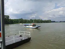 Im Auwald befindet sich die Anlegestelle für die Rheinhäuser Fähre, eine im Sommer betriebene Personenfähre für Wanderer und Fahrradfahrer, die Speyer mit Rheinhausen verbindet.