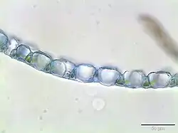 Mikroskopisch bedeutende Merkmale sind die vergrößerten Rindenzellen, die 2 bis 3 Lagen bilden. Die Stammblatt-Hyalocyten weisen keine Fibrillen oder Poren auf. Die Astblatt-Chlorocyten erscheinen im Querschnitt dreieckig und sind meist beiderseits freiliegend und werden höchstens innen von den gewölbten Hyalocyten eingeschlossen.