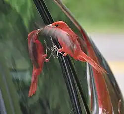 Vögel besetzen zur Brutzeit ein Revier und sichern sich so die Nahrungsgrundlage für die Aufzucht ihrer Jungen. Dringt ein fremder Artgenosse ins Brutrevier ein, wird er bedroht, angegriffen und möglichst vertrieben. Viele Vögel können ihr Spiegelbild nicht als solches erkennen (vgl. Spiegeltest).[2] Wie viele andere Tierarten halten sie ihr Spiegelbild für einen Rivalen, der attackiert und vertrieben werden muss.[1] Daher schlagen sie mit dem Schnabel gegen das Fenster. Im deutschsprachigen Raum sind es meist Vogelarten, die um Häuser herum leben, wie Bachstelzen, Buchfinken, Amseln, Haussperlinge und Rabenkrähen. Größere Arten wie Elstern oder Krähen können dabei die Dichtungsgummis der Fenster beschädigen.[3] Weltweit ist dieses Verhalten bei knapp 200 Arten dokumentiert.[4] Von Jägerliesten und Südlichen Hornraben sind sogar zerbrochene Fensterscheiben bekannt.[1]:42 Auch wenn sich die Vögel dabei meistens nicht verletzen, bedeutet es zusätzlichen Stress während der Brutzeit.[5] Das Phänomen tritt insbesondere in der Brutzeit zwischen März und Juni, bei Rabenvögeln mitunter ganzjährig auf.[5] Nachdem die Jungvögel geschlüpft sind, verschwindet meist auch das Spiegelfechten.[3][6]