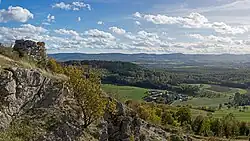 - der vielfältigen, ökologisch wertvollen und vernetzten Biotoptypen, wie z. B. Kalkmagerrasen, Felsen, Schuttfacies, Magerrasen, Feldgehölze, Hecken, Feuchtgebiete, Laubwald, Blockhalden und Streuobstwiesen,