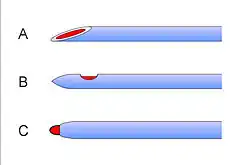 Ein technisches Versagen der Spinalanästhesie (Unmöglichkeit der Durchführung, Nadelverbiegung, sehr selten Nadelbruch) ist direkt vom Durchmesser der Spinalnadel abhängig. Bei Standardnadeln (Gauge 25) beträgt diese Rate weniger als fünf Prozent, nimmt bei dünneren Nadeln jedoch zu. Da eine größere Nadeldicke mit einer höheren Rate an postpunktionellem Kopfschmerz assoziiert ist, ist die Auswahl der Nadel ein Kompromiss.[31]