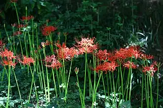 - Schwarzrote Spinnenlilie (Lycoris sanguinea Maxim.): Sie kommt im zentralen sowie südlichen Japan vor.[5]