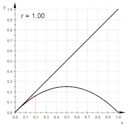 Ein Lémeray-Diagramm, Spinnwebdiagramm, Spinnwebplot oder Verhulst-Diagramm ist ein visuelles Werkzeug, das im Gebiet der dynamischen Systeme der Mathematik zur Betrachtung des qualitativen Verhaltens von eindimensionalen iterierten Funktionen wie der logistischen Abbildung verwendet wird. Die Methode wurde Ende 19. Jahrhundert von E.-M. Lémeray vorgeschlagen.[1] Ihre Anwendung macht es möglich, auf den Langzeitstatus einer Anfangsbedingung unter wiederholter Anwendung der Abbildung zu schließen.[2]