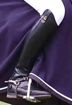 Kastensteigbügel werden in der iberischen Reitweise teilweise anstelle von Sporen verwendet.
